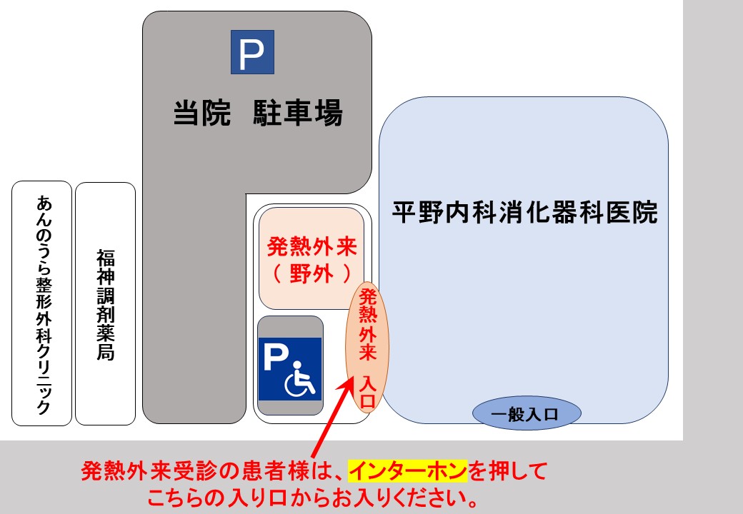 □ ウイルス陽性の患者様は、野外スペース、自家用車でお越しの方は車内で、待機していただくことがあります。